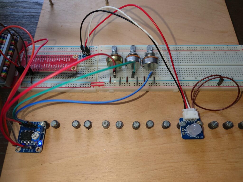 Das Projekt kommt aus dem Freenove Starter Kit, Kapitel 9: Potentiometer und RGB-LED.